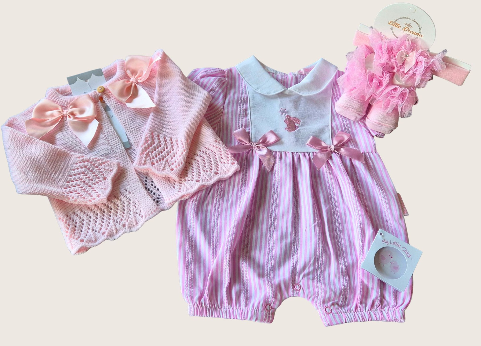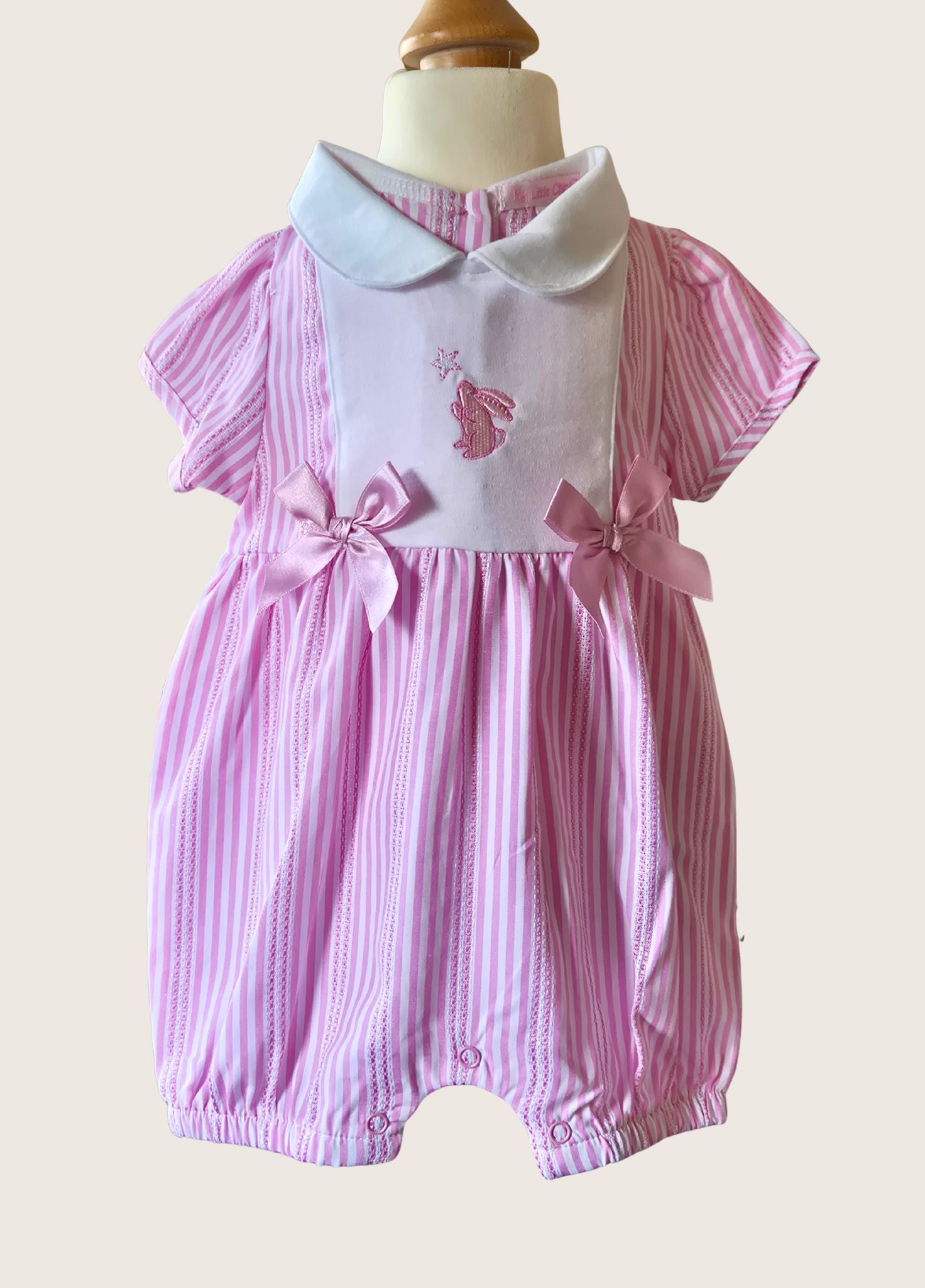 Baby Pink Candy Stripe Romper Suit Rabbit Motif| My Little Chick