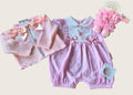Finished with two pink satin ribbon bows at the base of the bib, this romper is both elegant and practical. Button fastenings at the back and press studs around the legs ensure easy dressing and quick nappy changes, while the lightweight fabric keeps little ones comfortable on warmer days.