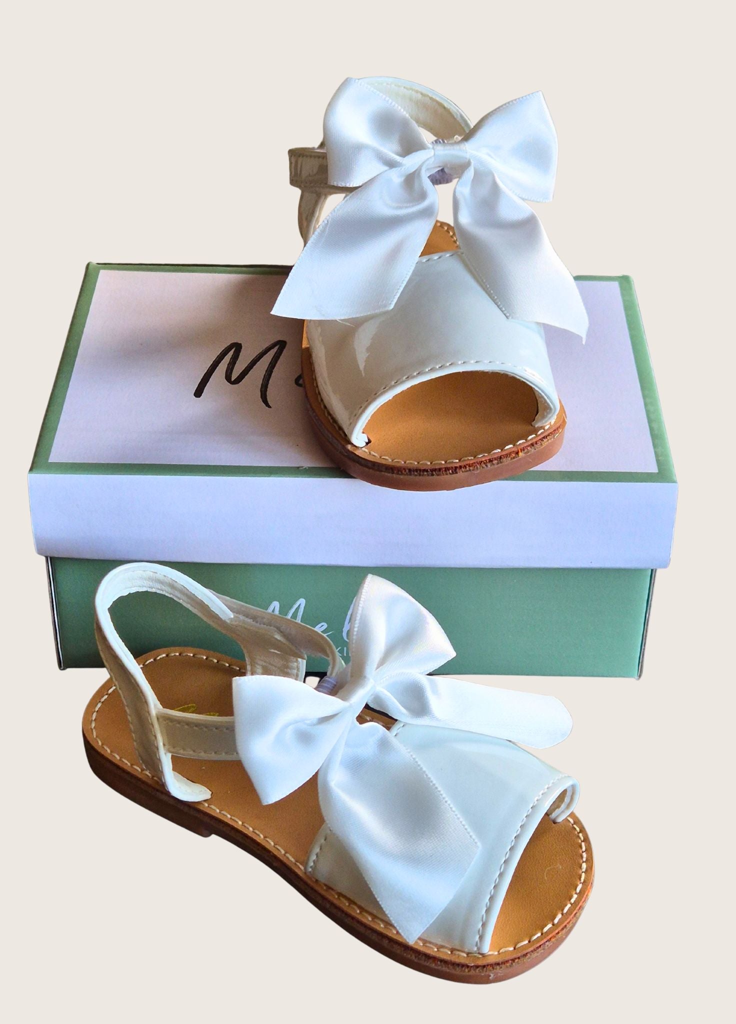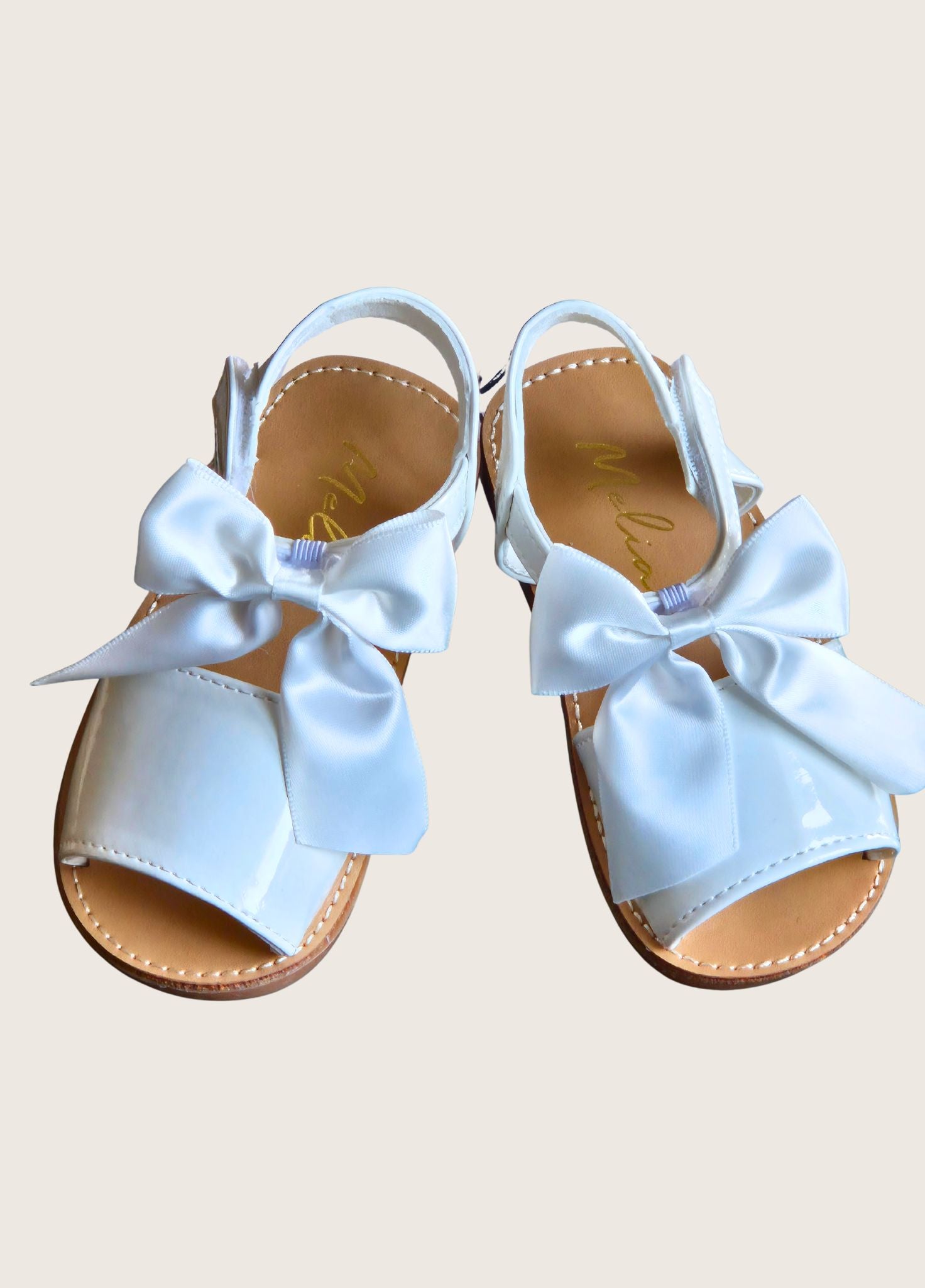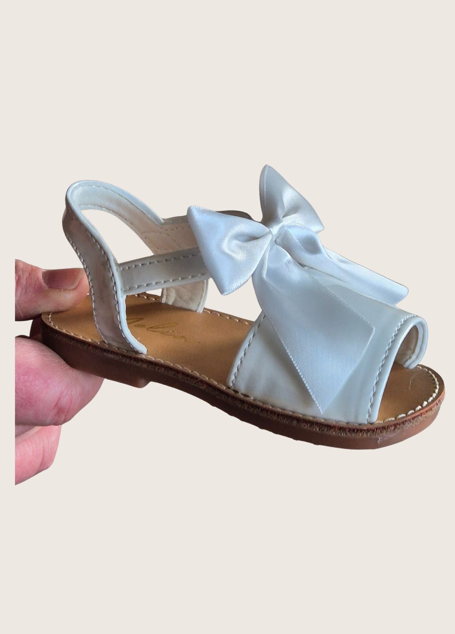 Girls Spanish White Satin Bow Sandals | Melia Shoes