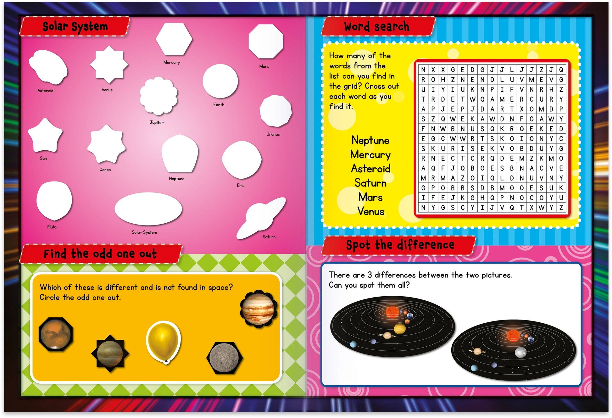 Bright, Colourful Illustrations – fun artwork that young space fans will love.
